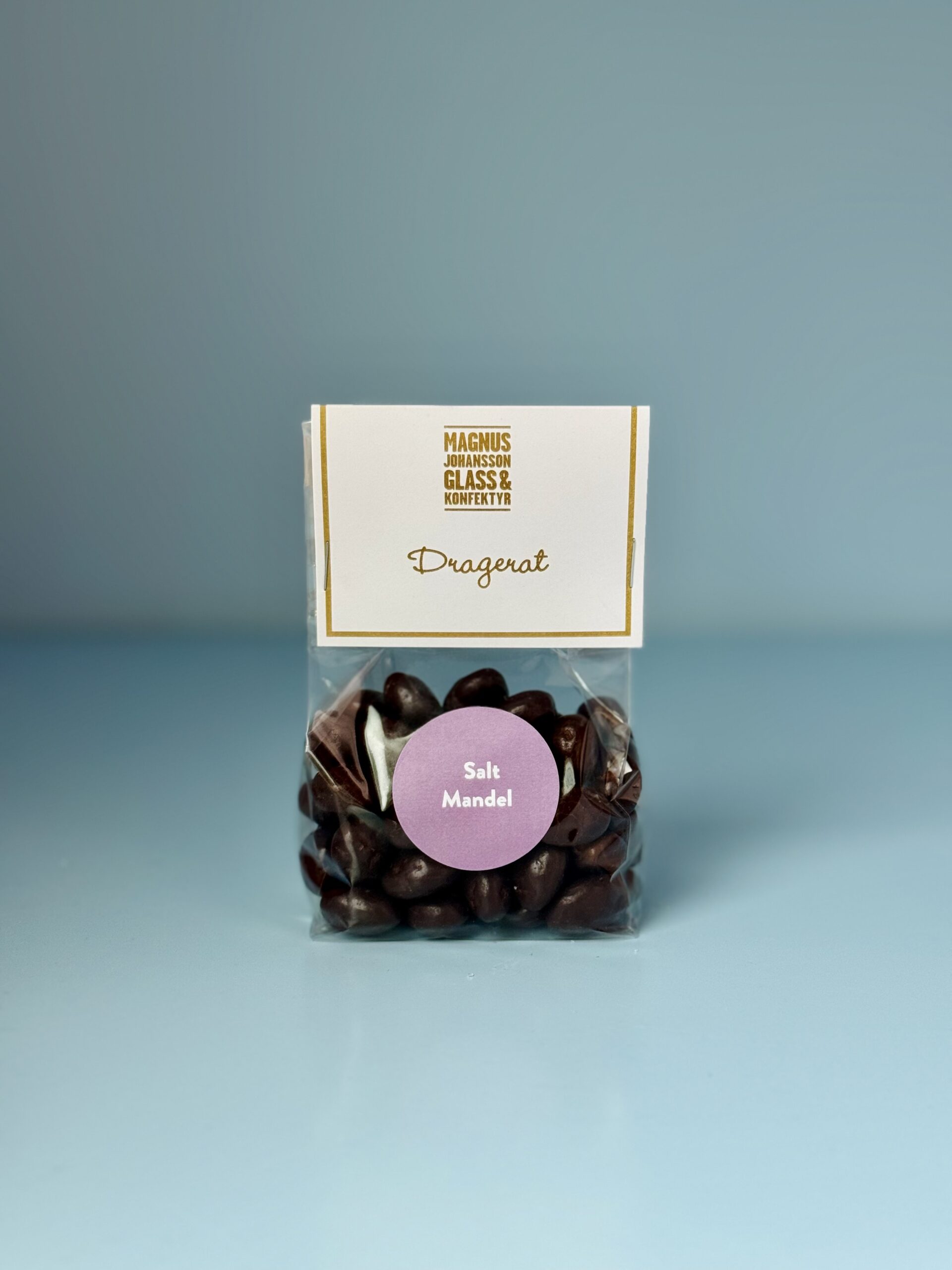 Salta marcronamandlar med smält chokladtäcke av den bästa chokladen.