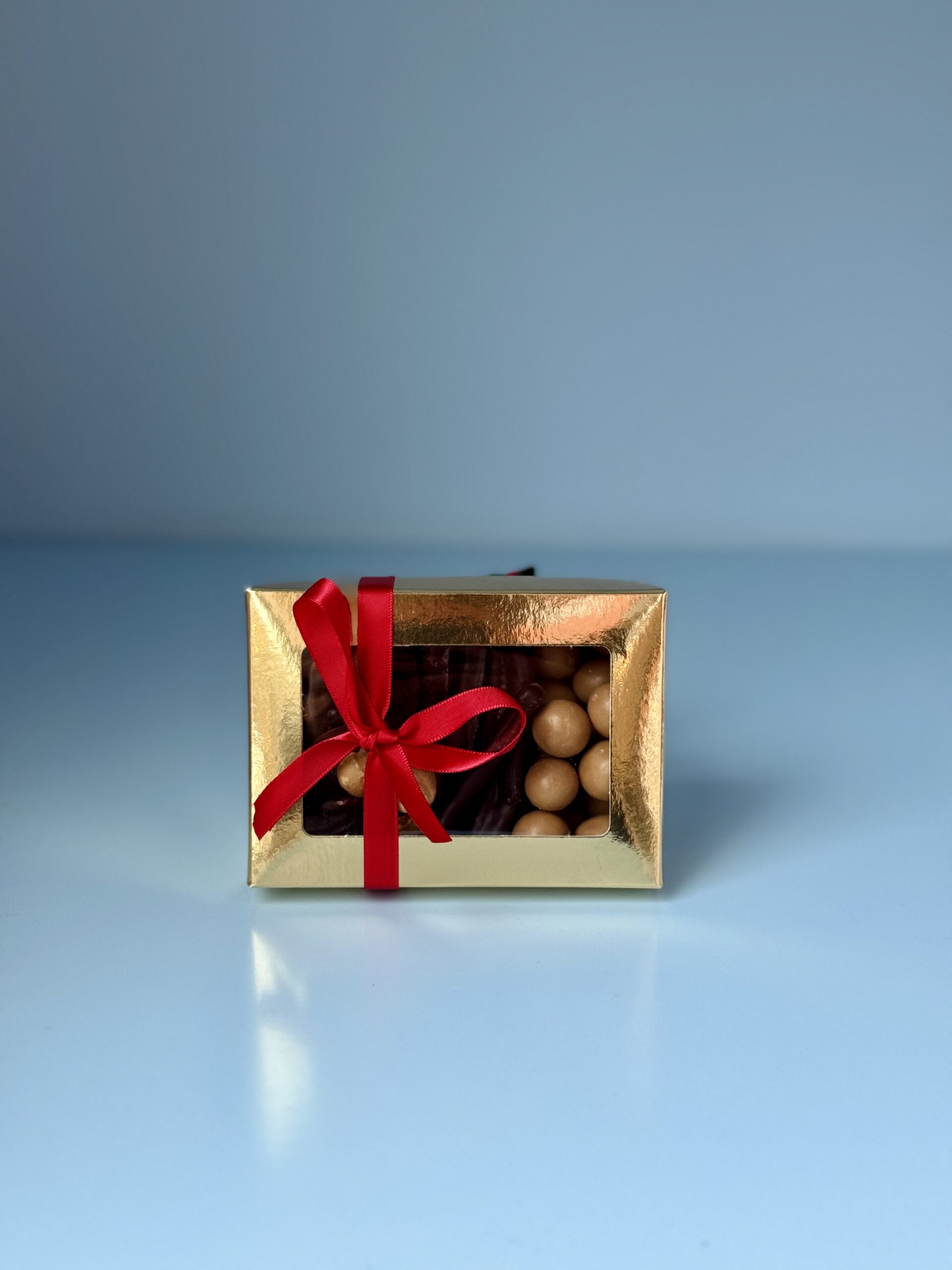 Innehåll: Socker, HASSELNÖTTER (21,5%), apelsinskal (18,4%), kakaomassa, glukos-fruktossirap, kakaosmör, HELMJÖLKSPULVER, HASSELNÖTTER* (3,2%), PISTAGENÖTTER* (2,2%), tranbär (1,9%), emulgeringsmedel: E322 (SOJA), solrosolja, naturlig vaniljarom, surhetsreglerande medel: E330. *Ekologisk ingrediens. Kan innehålla spår av följande allergener: nötter, jordnötter, sesamfrö, sulfit, mjölk