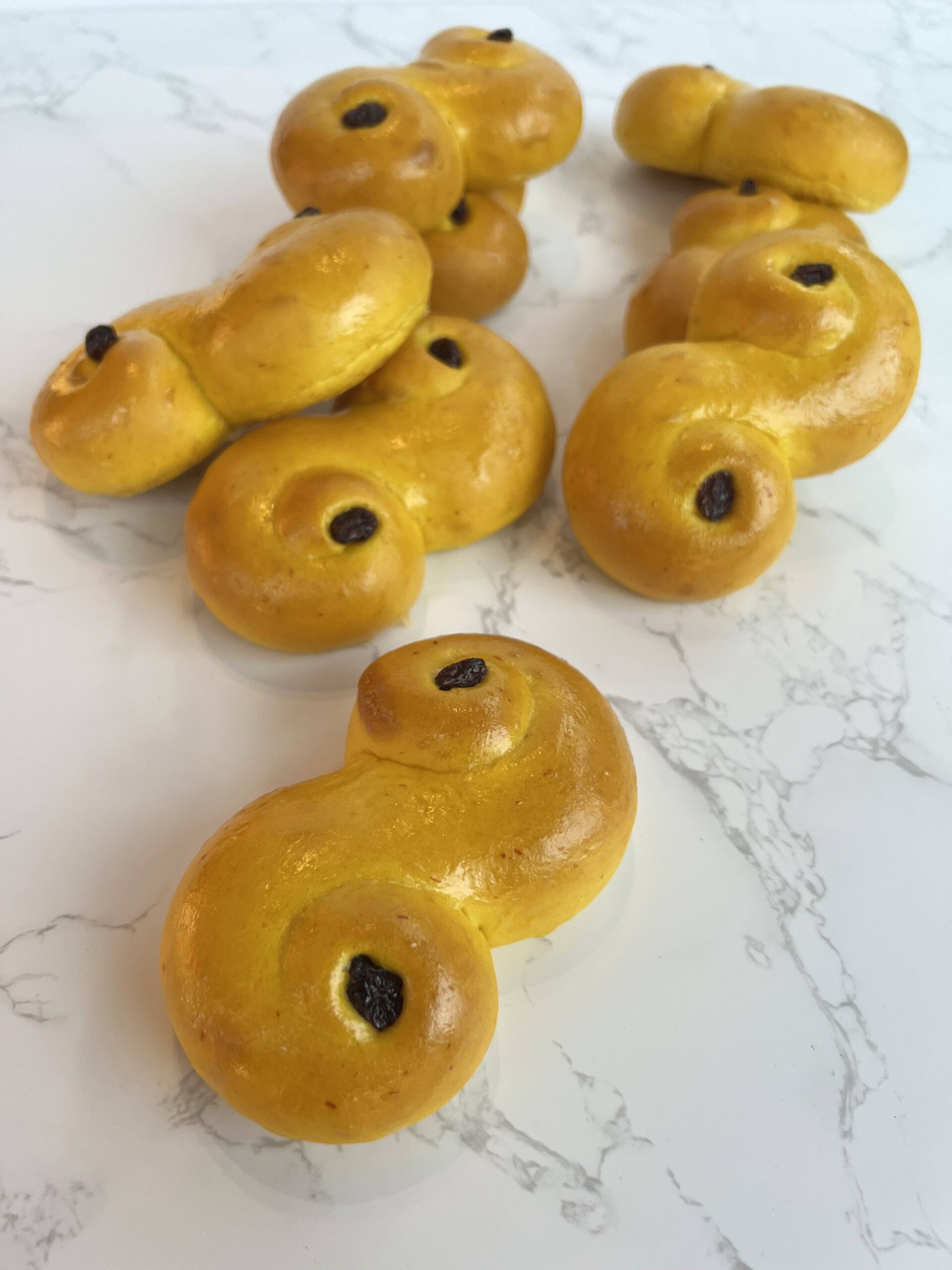 En saftig lussekatt bakad i vårt bageri i Hammarby Sjöstad.