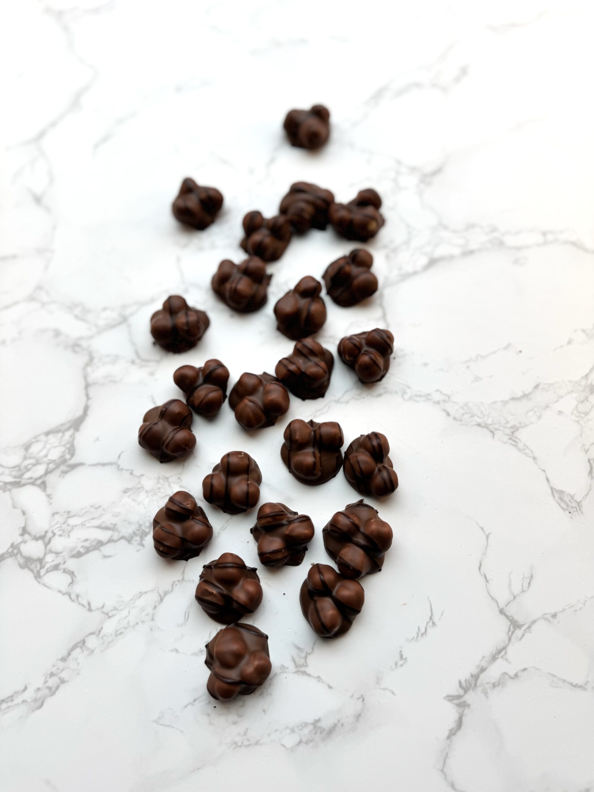 Hasselnötter från Piemonte doppade i ljus- och mörk choklad.